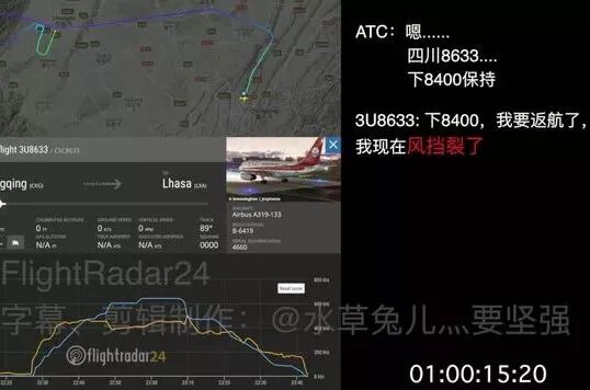 其中显示,在飞机出现故障后,机长十分沉着冷静地与ATC进行联系,“现在…有点故障”,申请下降高度和返航。