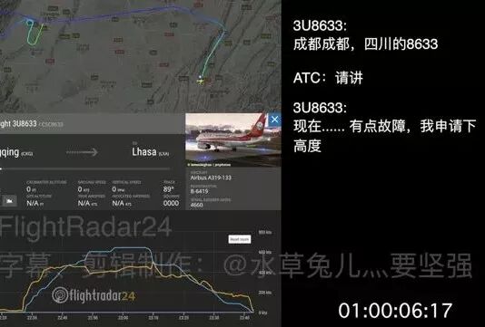 之后ATC启用紧急频道121.5,和空中其他机组一起呼叫8633航班。ATC:“成都叫你”