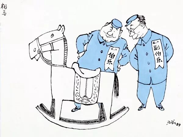 《相马》 伯乐和副伯乐“认真”、煞有介事的相着一匹不会言语、认真听话的木马。