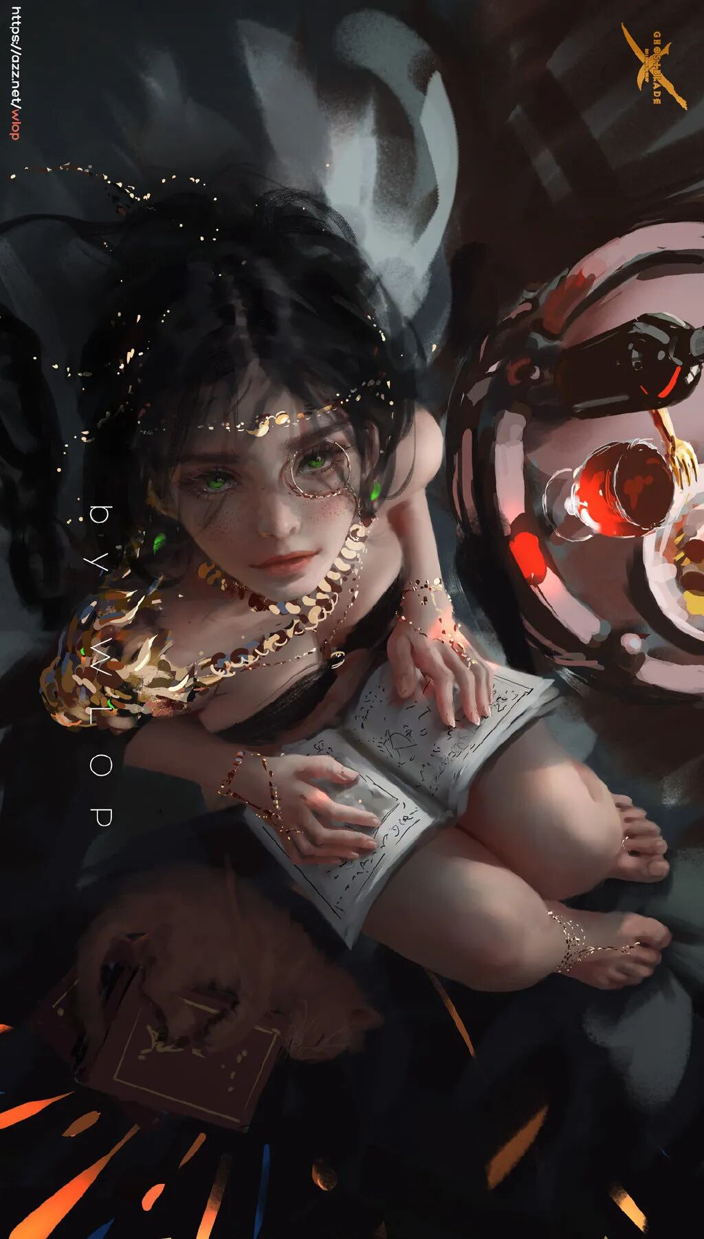 通过这些金属器物,其实可以增强造型的视觉效果,尤其经过两年的锤炼,WLOP对于金属感的塑造,还有画面的光影都更上一层楼,使画面显得高级
