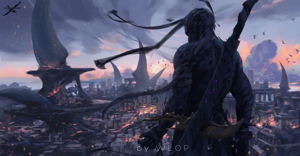 一直以来,WLOP对于用色块总结物体的能力非常强,虽然现在的作品依旧是采用了大色块堆叠,靠光影撑画面层次感的手法来创作作品