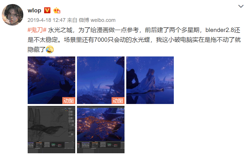 而刚刚提到了3d建模,其实WLOP大大在去年4月开始就自学建模,有不少读者还以为他是要往动画化或者游戏化发展,甚至连配音界的大佬边江都在他的微博下留言