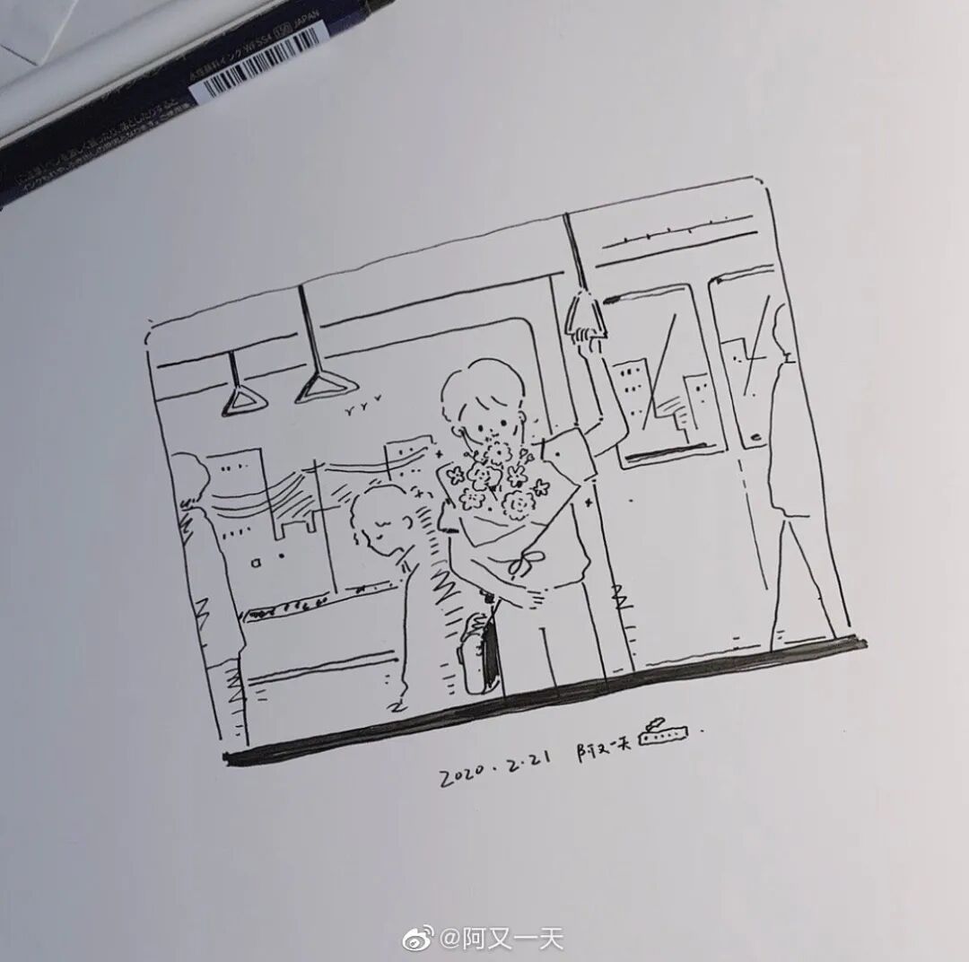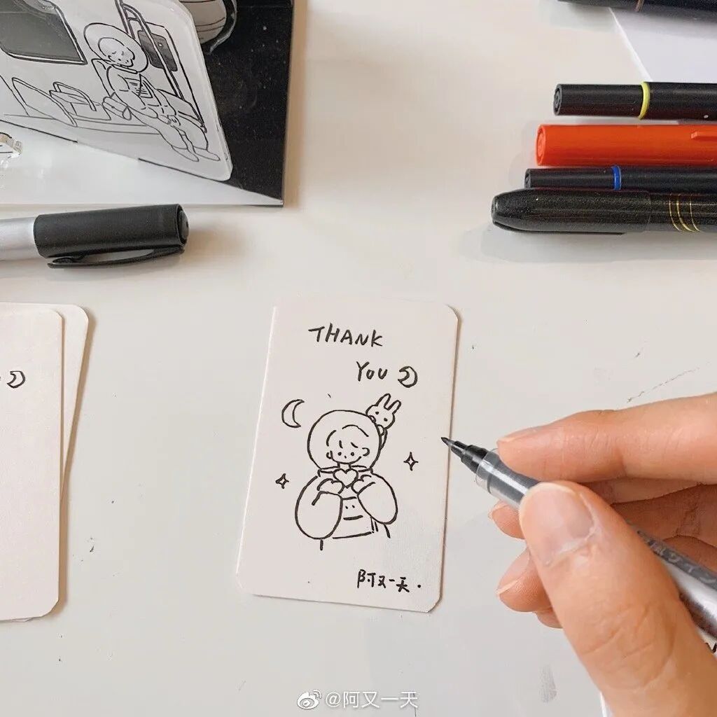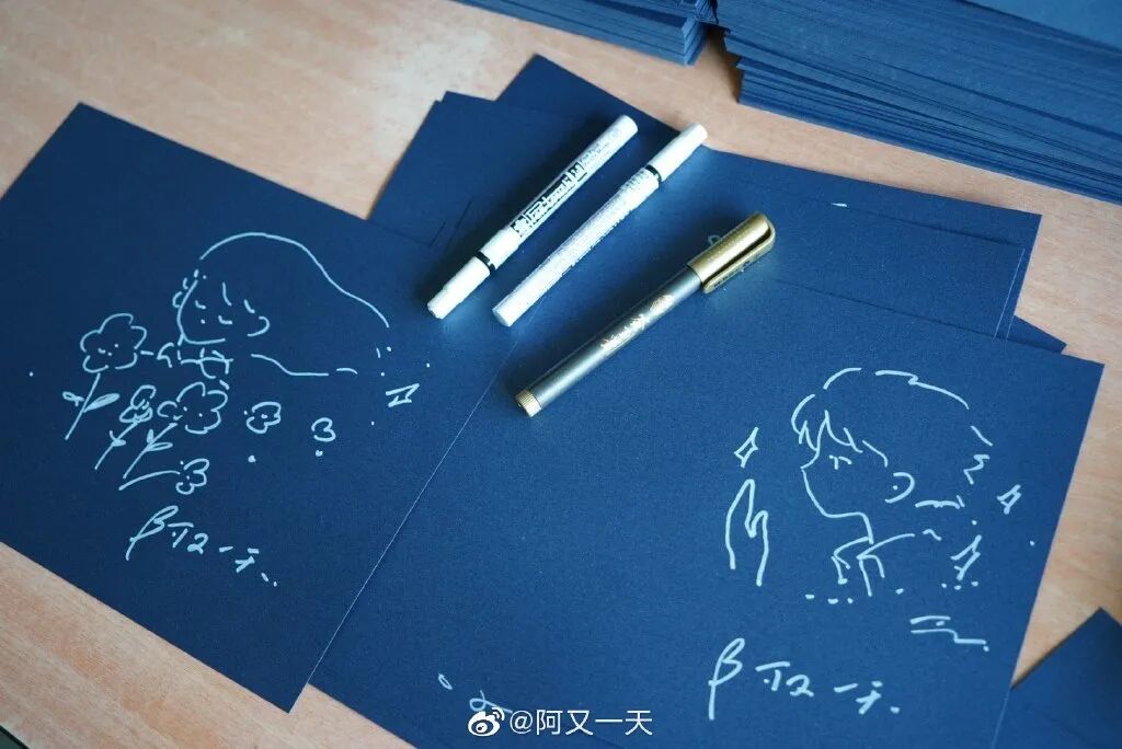 但阿又这么说显然是谦虚,从视频就能看出,他下笔手稳,功底扎实。而且也不仅只会画简笔画,翻看他的微博还知道他画水彩、马克笔,做动画等等…
