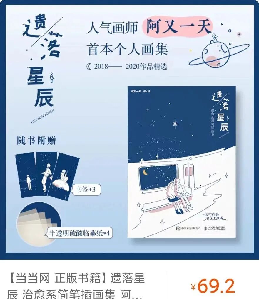 不过,这些周边基本是跟店铺合作,阿又觉得也该尝试出自己的产品了。于是在去年,他开始筹备作品集,并在最近上市了。还是延续了他一贯的治愈文艺风格,也用了他最喜欢的蓝色。