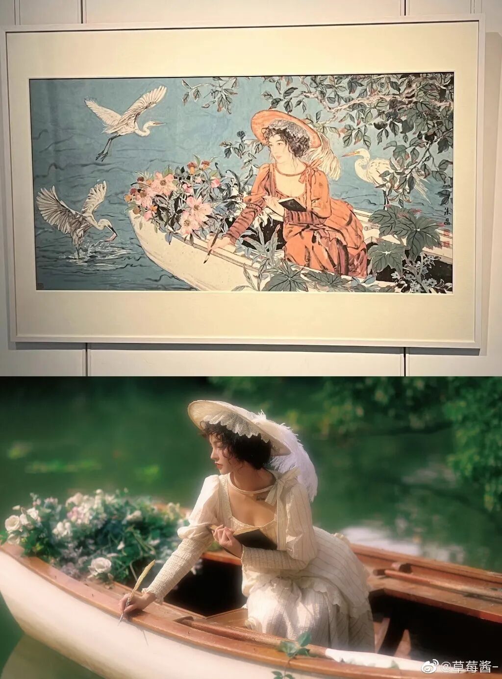 微博网友@阴间电子蛇头鴉 就做了一个对比合集,这位画家网上发出的作品,几乎都能找到临摹原图……