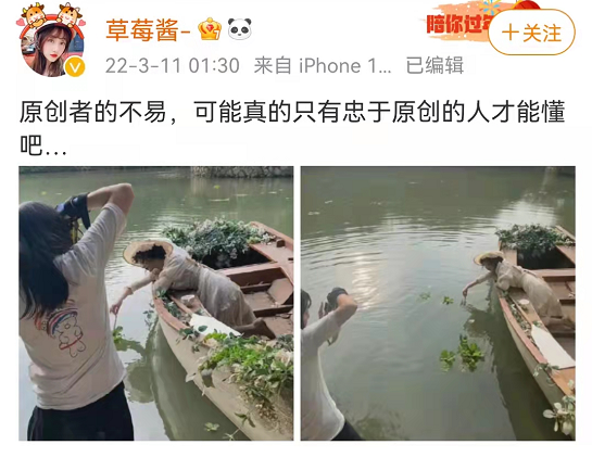 微博12.8w粉丝的摄影师@草莓酱 随后发微博表示,自己的摄影作品也被抄,而且还不止一张,而是抄了 3 张!