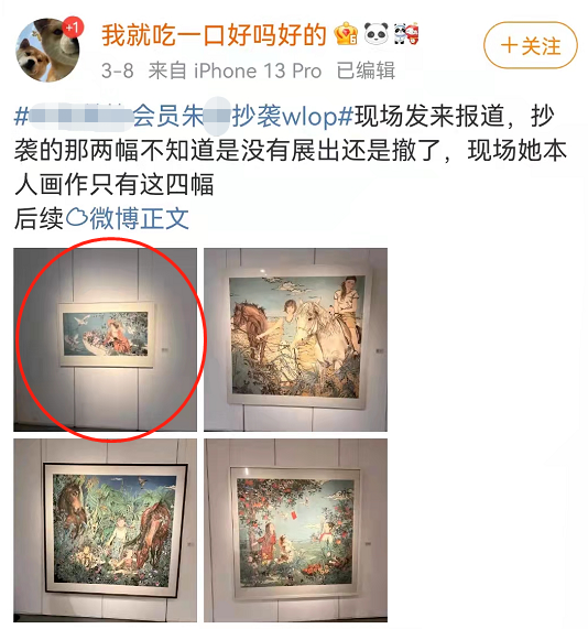 而这位画家原定3月8号做的一个公益课堂活动取消了,画展也把抄袭作品扯下