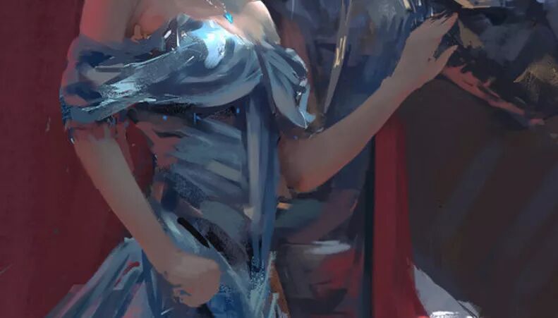 在其他插画作品里也可以看到,公主的神情经常是忧郁的,悲伤的,这就跟《鬼刀》的世界观和故事联系在一起了