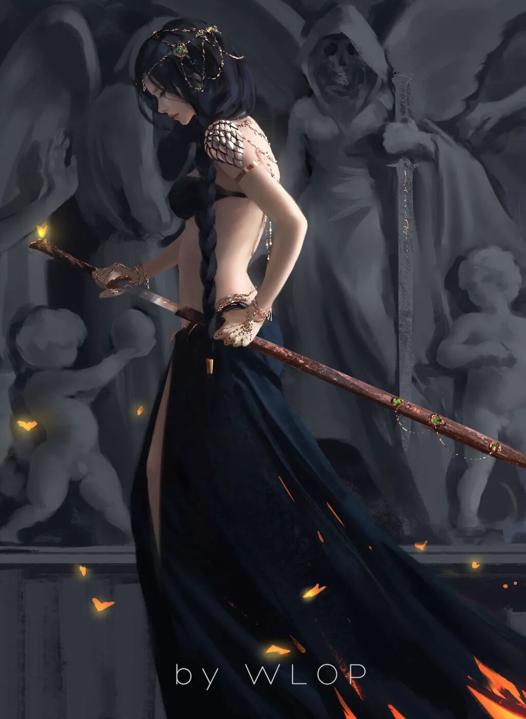 显然,插画就比漫画容易多了!在这个世界观下,wlop大大放飞自我,沉迷于画各种与剧情无关的女儿们的美图!