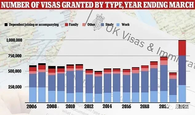 英国智库Migration Watch UK的主席Alp Mehmet表示:“过去一年有超100万外国公民获准来英国生活。比疫情前大幅度增加,是有史以来获批的最高量。”