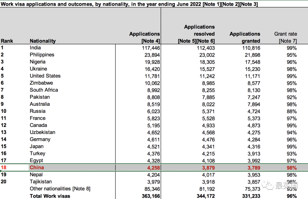 不过值得注意的是,海外工签方面,中国国籍申请者共4258位,其中3789位获签,相当于每个季度不到1000人,在榜单排名第18。