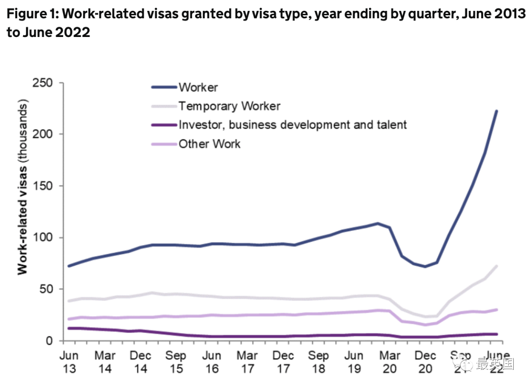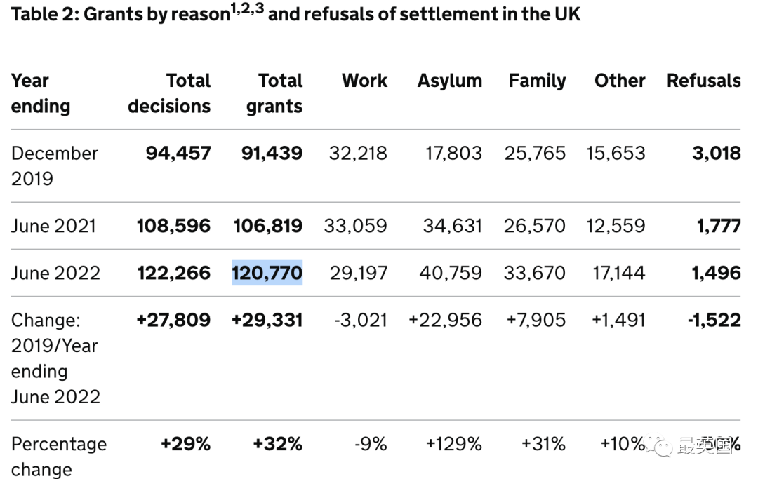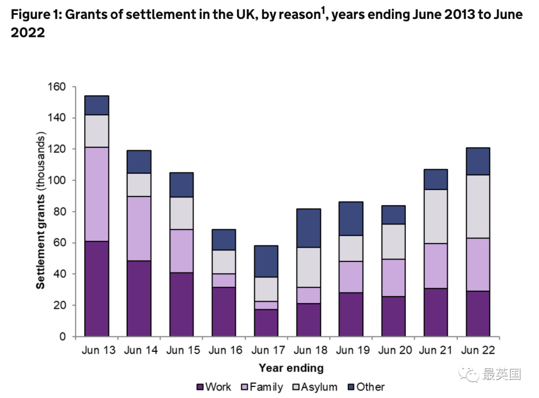 最新的数据还显示,过去一年共有120,770人获得了英国永久居住的签证,比疫情前高出32%,是自2015年来的最高水平。