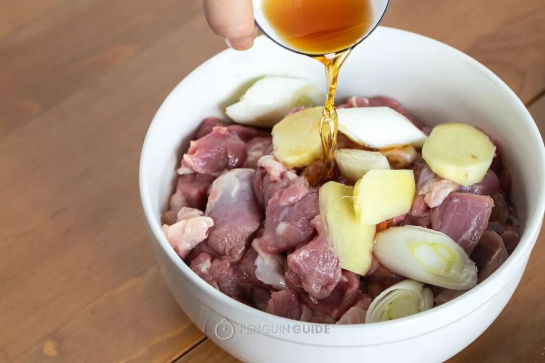 这次我们用了羊腿,来自上海澳门路的新疆市集。不喜欢膻味重的朋友,加葱姜料酒腌一会儿。