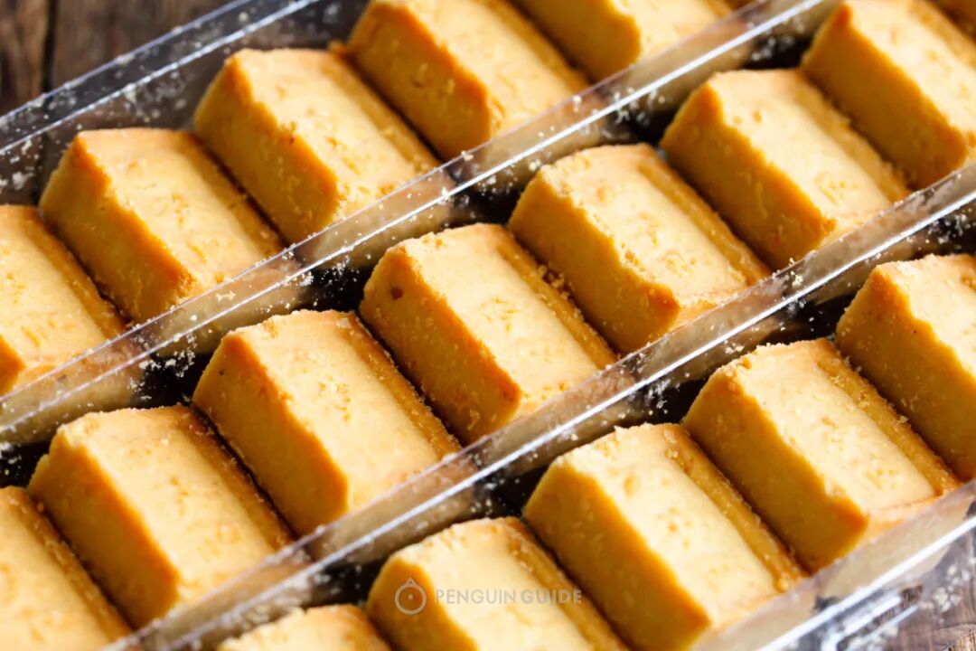 不管是刚刚提到的蒜蓉枝,还是这颗麻粩,都是福建人把控咸甜平衡的出色成果。这是泉州永春县最有名的茶点之一。质感非常有意思:外层是粘韧的麦芽糖层,但内里却是蓬松的网纱状。掰开时,能扯出了无数条细丝。挪不开眼睛……我们最喜欢花生味,外层的花生碎油润细密,坚果的油脂香与五香粉带来的咸度融合得很温柔。海苔味虽然不算经典,但也很新奇。*不推荐具体品牌啦,只要是当地的品牌,味道都差不多的。翰林糕是漳州历史非常悠久的糕点,你可以理解为更酥脆喷香的绿豆糕。