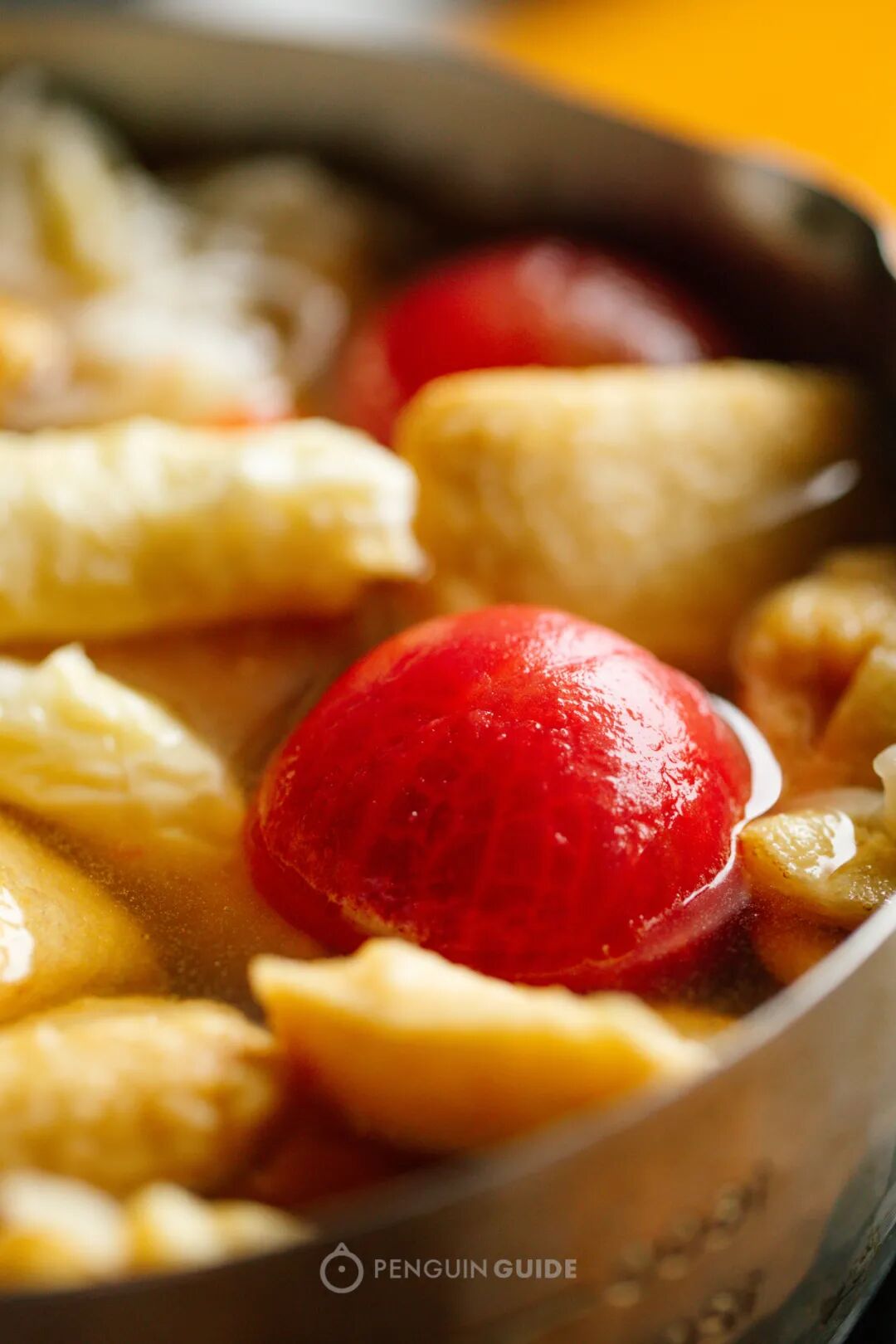 番茄已经吸收的关东煮的昆布鲣鱼鲜汤,飚汁SOS,请尽量一口吞,冰凉爆浆,有一股酥麻全身的上头感......