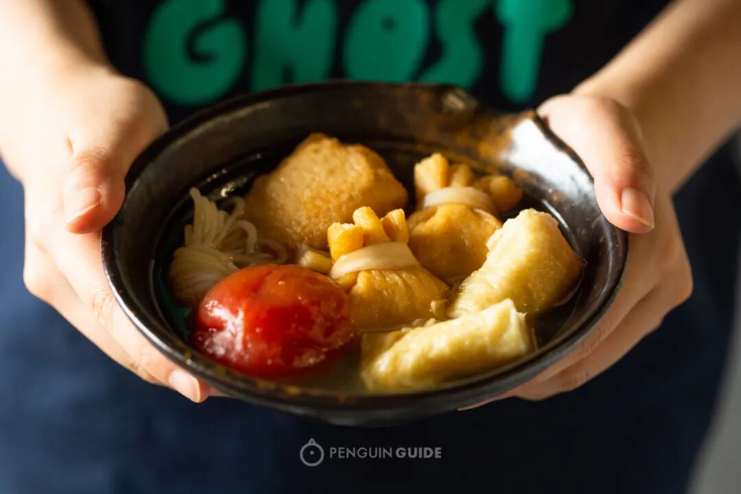 隔夜的鱼籽福袋比热吃更灵,每一个气孔都灌注了关东煮的汤汁,冷吃会更放大鲜甜感。