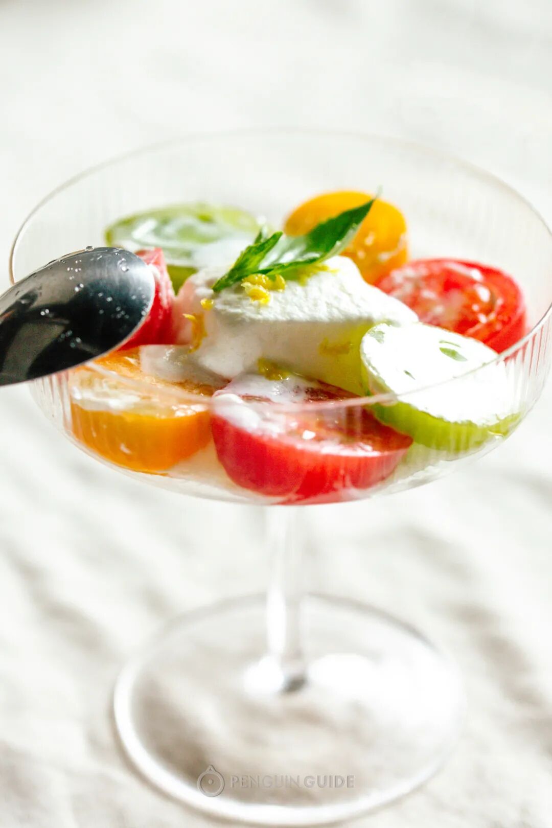 刚入口是酸酸甜甜,之后是肉的回香,冰过的脂肪口感在酸冷的衬托下显得更加立体,全然没有肥腻感,清爽!还有一个酸甜版配方,是在Bar a vin吃到的,新鲜番茄配上百香果,从未想过它们两个也可以这么搭!新鲜酸甜,层次感丰富,因为一共用了四五种不同的番茄,所以每吃一口,都有惊喜感~懒人的日常解决方法,就一瓶蘸面汁蘸一切,而番茄,可以赐予平凡的蘸面汁一次新生。冰沙质地的番茄,能够更好地与蘸汁融合,相当于往面汤里加了天然的番茄浓缩汁,两种鲜味非常搭调,还很清凉!蘸面汁基本超市和橙色软件都可以买到,加点水调至自己觉得合适的咸淡度就好。
