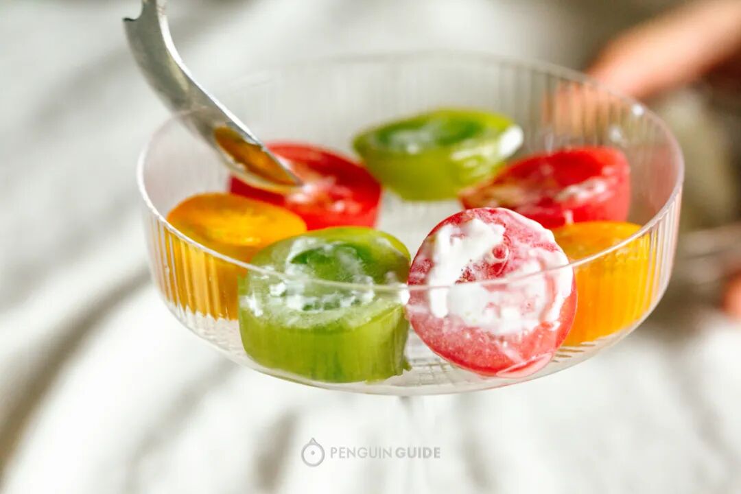 冰凉酸甜之于还带着番茄的清香,番茄中的水分被冻住后口感沙沙润润的,很奇妙,这个味道感觉吃多少都不会腻!