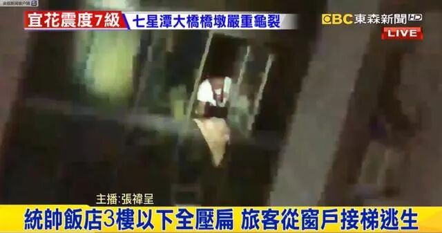 这是当夜台媒电视报道的截图画面,台媒说法是统帅饭店3楼以下全压扁。