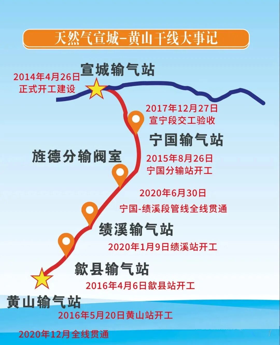 据了解,天然气宣城—黄山干线工程是我省“三纵四横一环”天然气省级主干管网的重要组成部分,也是管道天然气 “市市通”“县县通”重点工程。管道起自宣城市宣州区川气东送天湖首站,途经宁国市、旌德县、绩溪县、歙县、黄山市徽州区,全长210.5公里,总投资10亿元,设计年输气量8.22亿立方米。