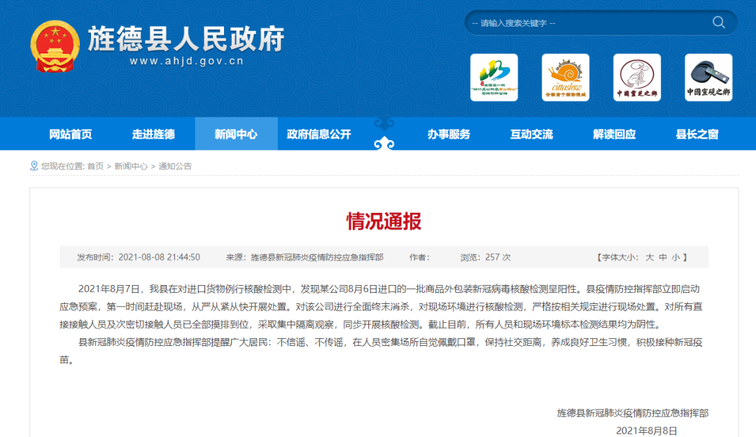 旌德县发布情况通报