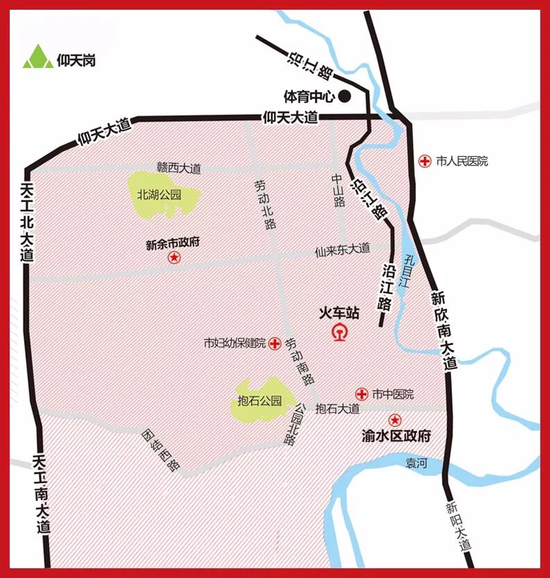 (一)市区天工大道以东、仰天岗山脉以南、袁河以北、孔目江以西和仰天大道(延伸段)以南、天工大道以西、纵三路以东、清宜路以北城市建成区域内;