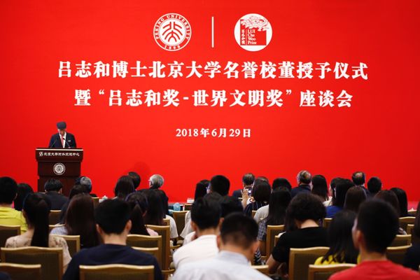 6月29日上午,“吕志和博士北京大学名誉校董授予仪式暨‘吕志和奖——世界文明奖’座谈会”在北京大学举行。