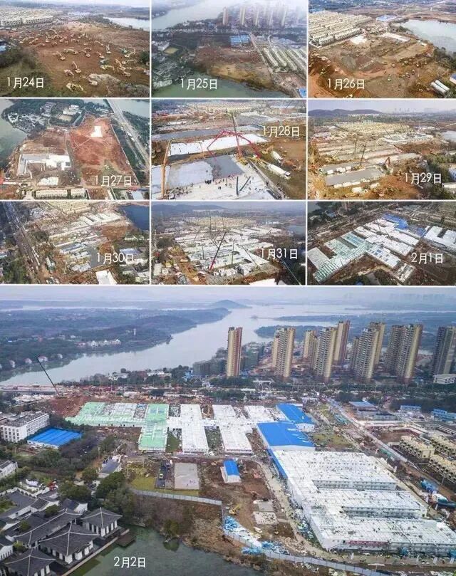 “基建狂魔”全力以赴与时间赛跑,仅仅十几天,两座医院拔地而起。我们可以自豪地说,这就是中国速度!