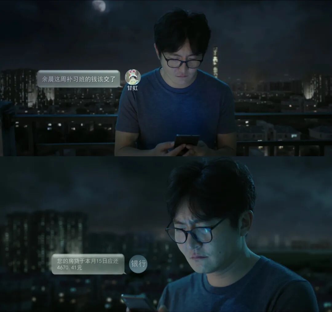因为,他就是现实生活中鲜活存在的人,他演出了小人物的悲和喜。余欢水曾手把手带出来的徒弟,现在在公司比他混得还好。余欢水打电话谈生意,对方早已挂断,为了不让徒弟瞧不起,他佯装在电话里跟对方的老总说话。结果,徒弟走过来抢走他手里的电话嘲讽道:“你这电话盲音啊,我一米外就听到了。”还有,余欢水想让徒弟分一些业绩给自己,反被当众挖苦:做人,最忌讳的就是贪,拿了不属于你的,迟早会损失更多。朋友借钱,余欢水二话没说把母亲留给他的13万都借给了他。余欢水低三下气地跟朋友说还钱的事,朋友连骗带拖,把余欢水耍得团团转。后来实在躲不过去,大言不惭地说:“钱我会还你的,但得看我心情。”余欢水不解,问他:“我拿你当兄弟,你怎么可以这样对兄弟呢?”这位朋友理直气壮:“我就是要这样对你,我就是要骗你,就是要撒谎,就是让你日子不好过,怎么了?”余欢水或许也会反思自己,当初借出去的钱一定都是脑子进的水。经历了老婆的闹离婚,好兄弟的“欺骗”,上司的羞辱……因为家里后妈的儿子要结婚,必须让他掏彩礼钱,不给钱就要告到法院。有的原生家庭是一个游乐场,在外受了委屈,回到家就能得到治愈。而有的原生家庭像一个无底洞,一边要对抗生活,一边还要填窟窿。“假电缆”三人组,为了封余欢水的口,魏总给出诱惑:“320平的房子,四室三卫,价值两千万。”梁安妮接着出面,上演美人计加苦肉计,求余欢水放一条活路。“那些因为劣质电缆死去的人,假设他们是你的亲人,你还会这样做吗?”说真的,社会这门课,太难了,不求满分,最起码得及格吧。他心里无数次想过反抗,可最终还是一个人坐在卫生间的马桶上,静静地思考人生。