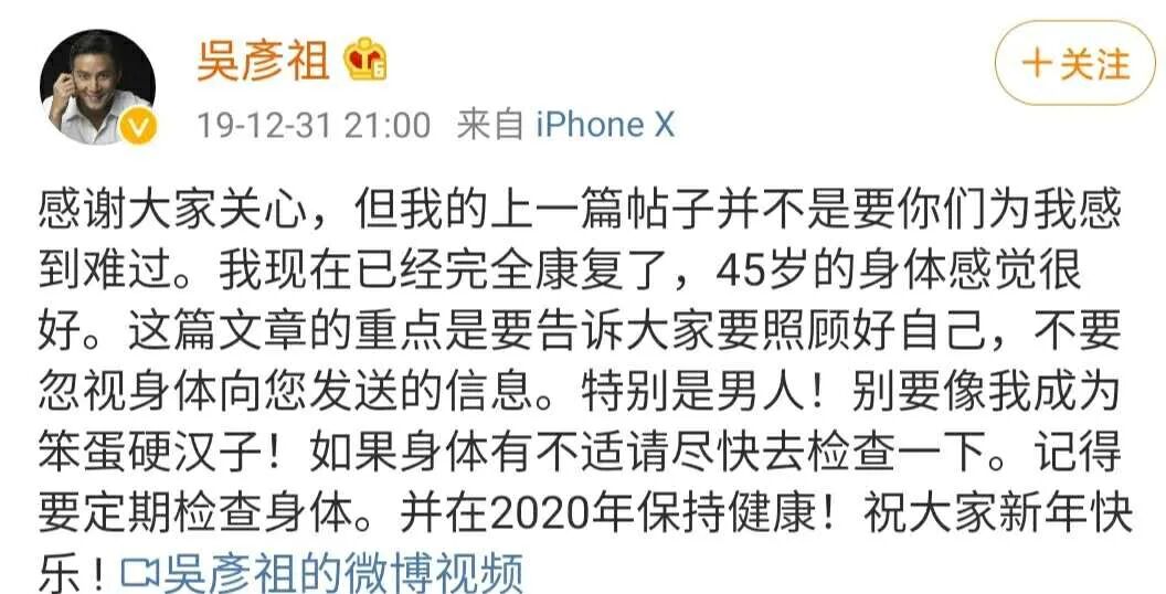 “不要把我的健康视为理所当然。”2019年的最后一天,他在微博上这样写道。