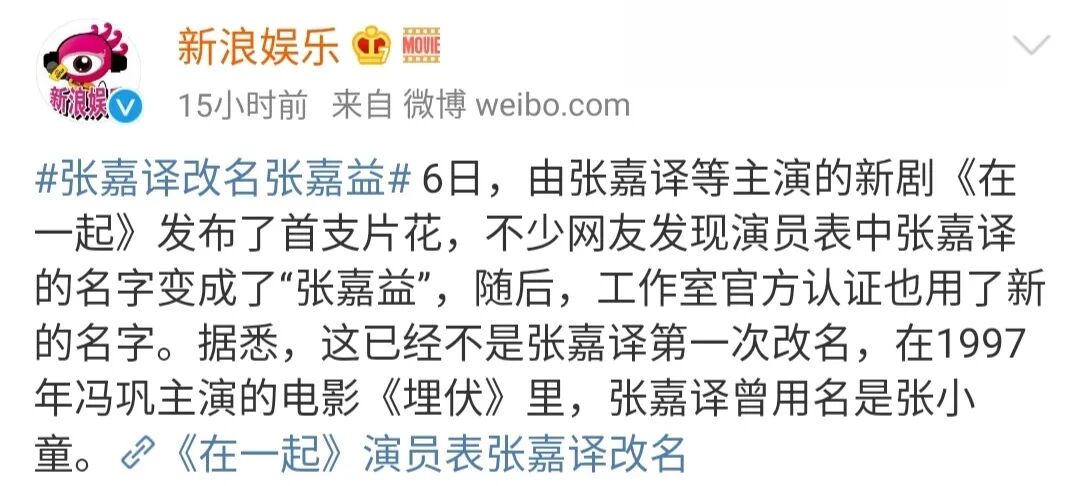 前几天,张嘉译因为“改名”上了热搜。他将名字中的最后一个字“译”,改成了“益”。