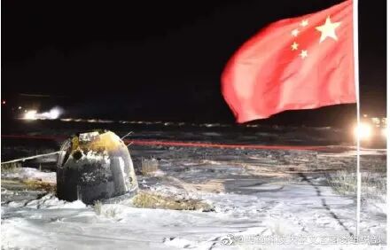 ▲返回器携带月球样品在内蒙古四子王旗安全着陆