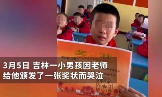 拿到这张奖状后,小男孩忍不住哭了,他哽咽着对老师说:“我一定能变得更好。”