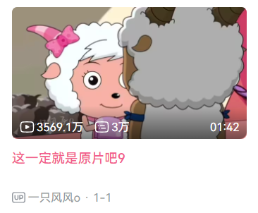 2023年伊始,定格在无数观众童年回忆中的《喜羊羊与灰太狼》以一种另类的方式重新回到了大众视野之中。这则没头没尾的小短片是B站UP主“一只风风o”兴趣使然的配音作品,尽管视频没有交代前因后果,人物设定也与本篇有着较大出入,但光是靠着UP主“冤种醋王”式的配音,围观群众照样在这个简单直白的直男吃醋视频中,被那句“阿里嘎多美羊羊桑”反复洗脑。![]()