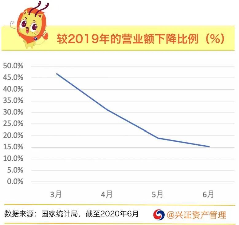 从营业额恢复总体来看,餐饮业营业额已恢复至六成以上,客流量恢复八成,账单数较正常日仅少7.02%。客流量的恢复带来了收入端呈现回暖态势,3-5 月餐饮收入分别同比下降 46.8%、31.1%、18.9%,6 月餐饮业收入 3262.4 亿元,同比下滑 15.2%,降幅在持续收窄。