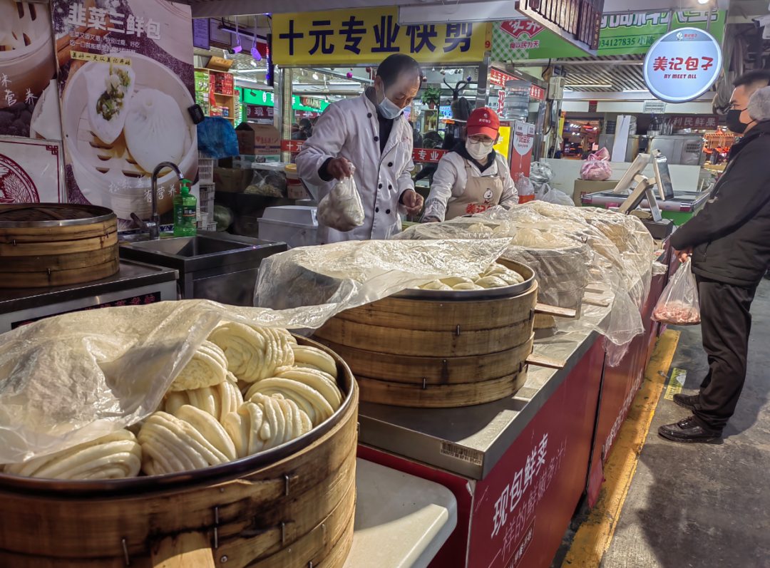 ▲迎泽区双塔寺街上的便民市场内,商户正忙