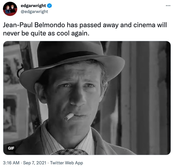 “让·保罗·贝尔蒙多走了,电影再也不会这么酷了。”