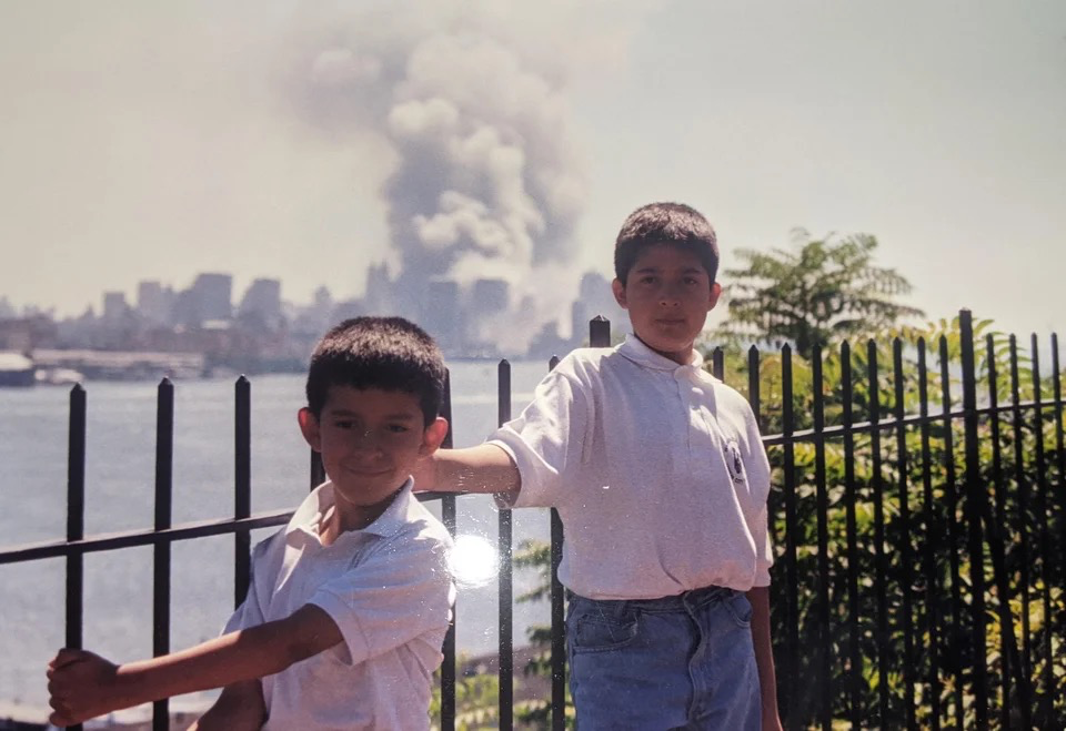 上图是911恐怖袭击发生那天,两个兄弟的合影。