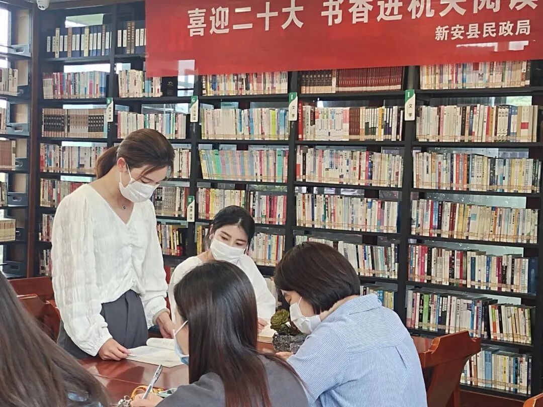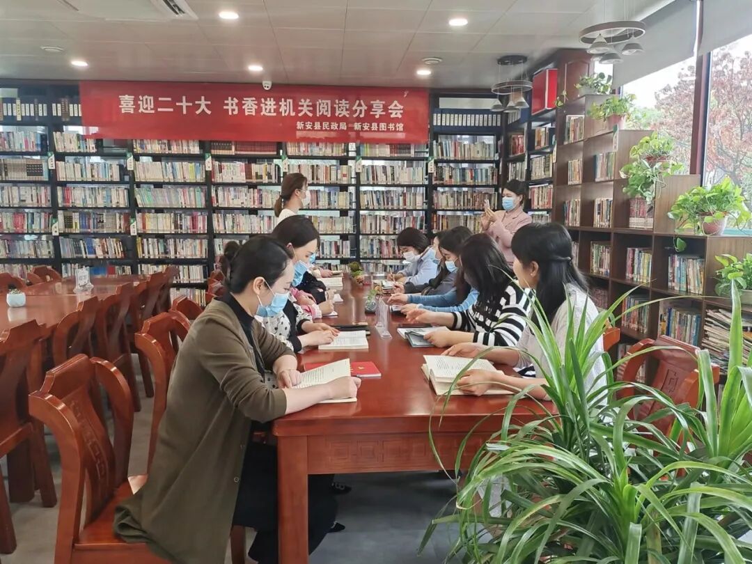 4月22日下午,县民政局员工在幸福有约绿苑城市书房开展以“喜迎二十大、书香进机关”为主题的读书活动,活动现场,大家分享了《我的人生思考》、《家国梦萦》等书籍,纷纷表示今后要在单位全力营造爱读书、读好书、善读书的机关氛围。