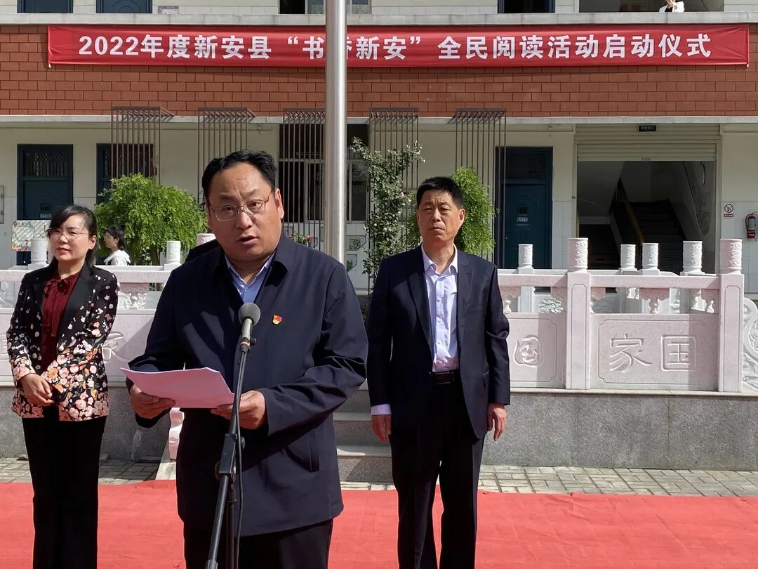 4月23日上午,由中共新安县委宣传部主办,新安县文化广电和旅游局、新安县教育体育局承办、县图书馆、县新华书店等单位协办,以“奋进新征程 阅读再出发”为主题4.23世界读书日暨2022年度新安县“书香新安”全民阅读活动启动仪式在县西关小学举行。