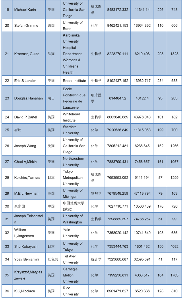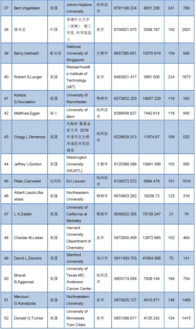 据悉,“全球顶尖前10万科学家排名”是北京同舟云网络信息技术有限公司基于其研发的全球学者库亿级海量文献数据基础上,运用强大的AI信息处理与数据挖掘技术,依据其独创的先进科技文献质量评估计分规则与方法对全球所有学科的学者文献进行集中处理和计算后得出的全球顶尖前10万科学家排名表。本排名表旨在帮助全球学者,特别是中国学者了解各个学科领域的专家和领军人物,追踪学科领域的研究前沿。在排名表研制过程中,始终秉持开放的原则,所有数据来源均真实可靠,并可追溯核实,排名不受任何外界环境和经济因素所影响,坚持公平公正的原则。![]()