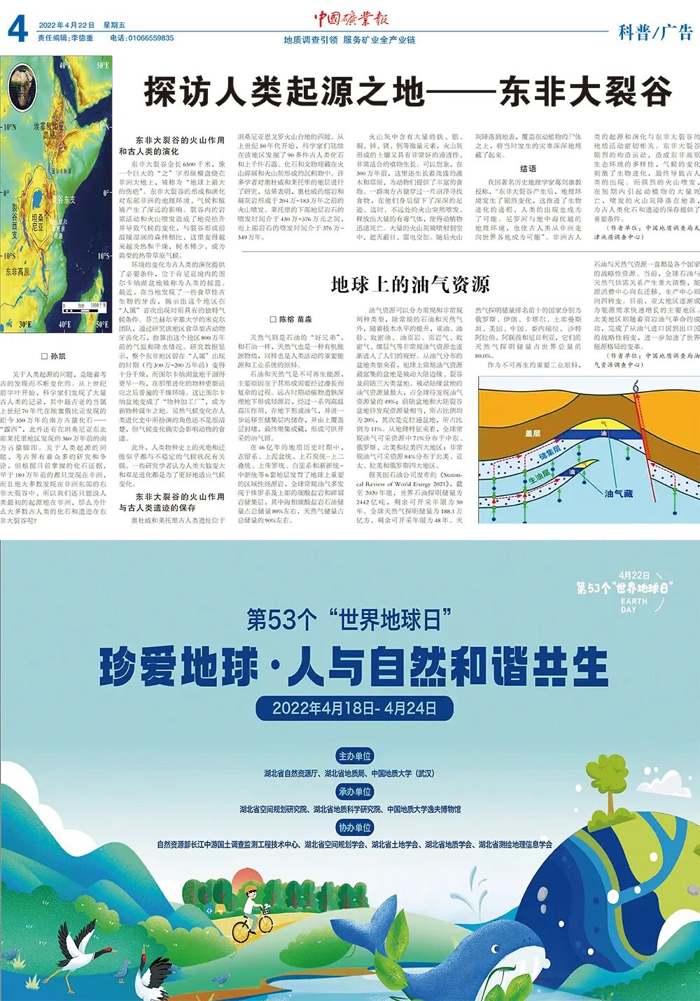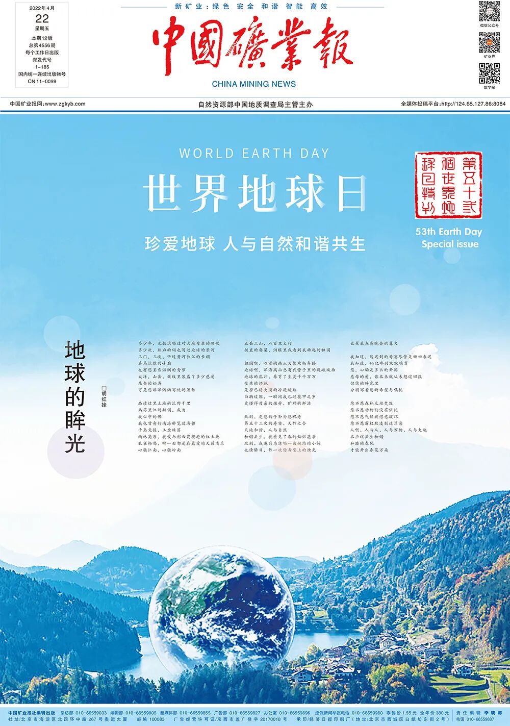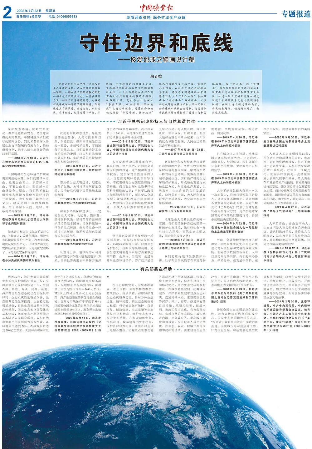 今天是2022年4月22日,第53个“世界地球日”。《中国矿业报》隆重推出“世界地球日”特刊,让小编带你一起去领略这12块版,内容精彩纷呈,值得收藏哦!
