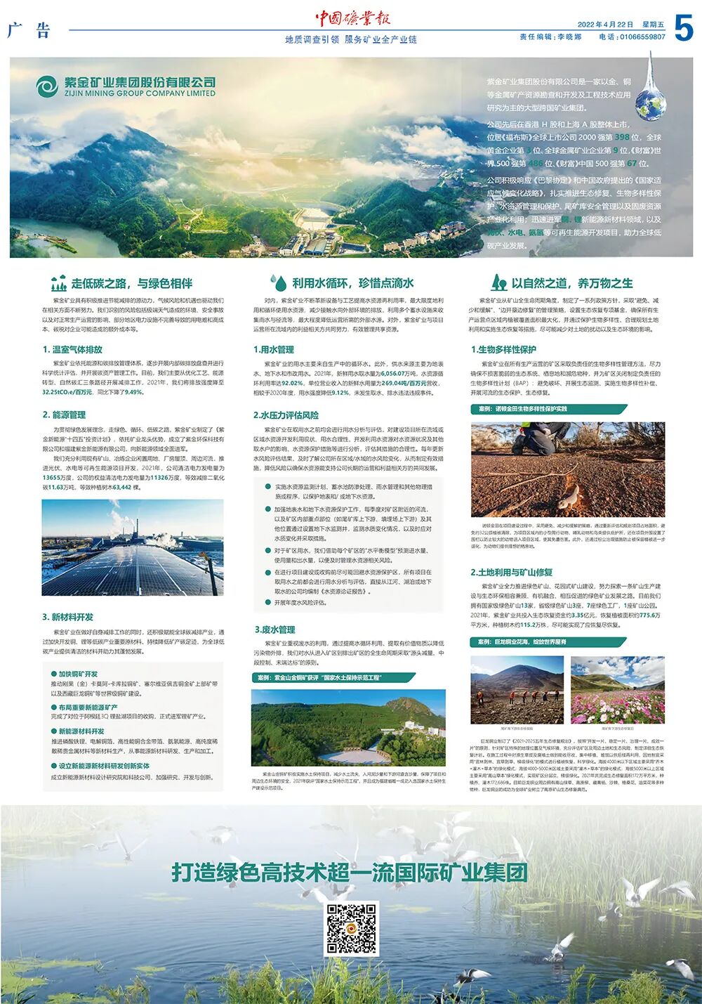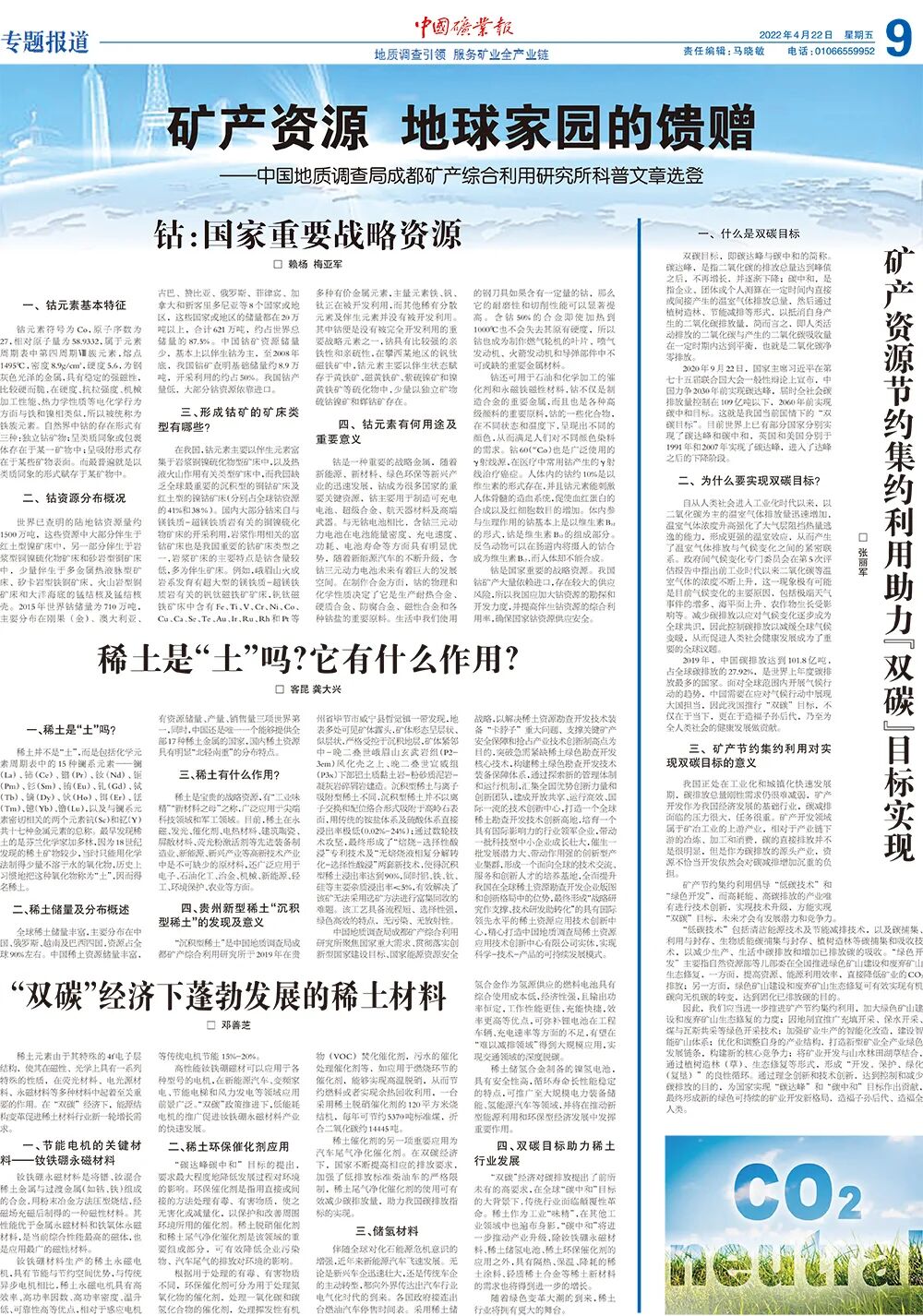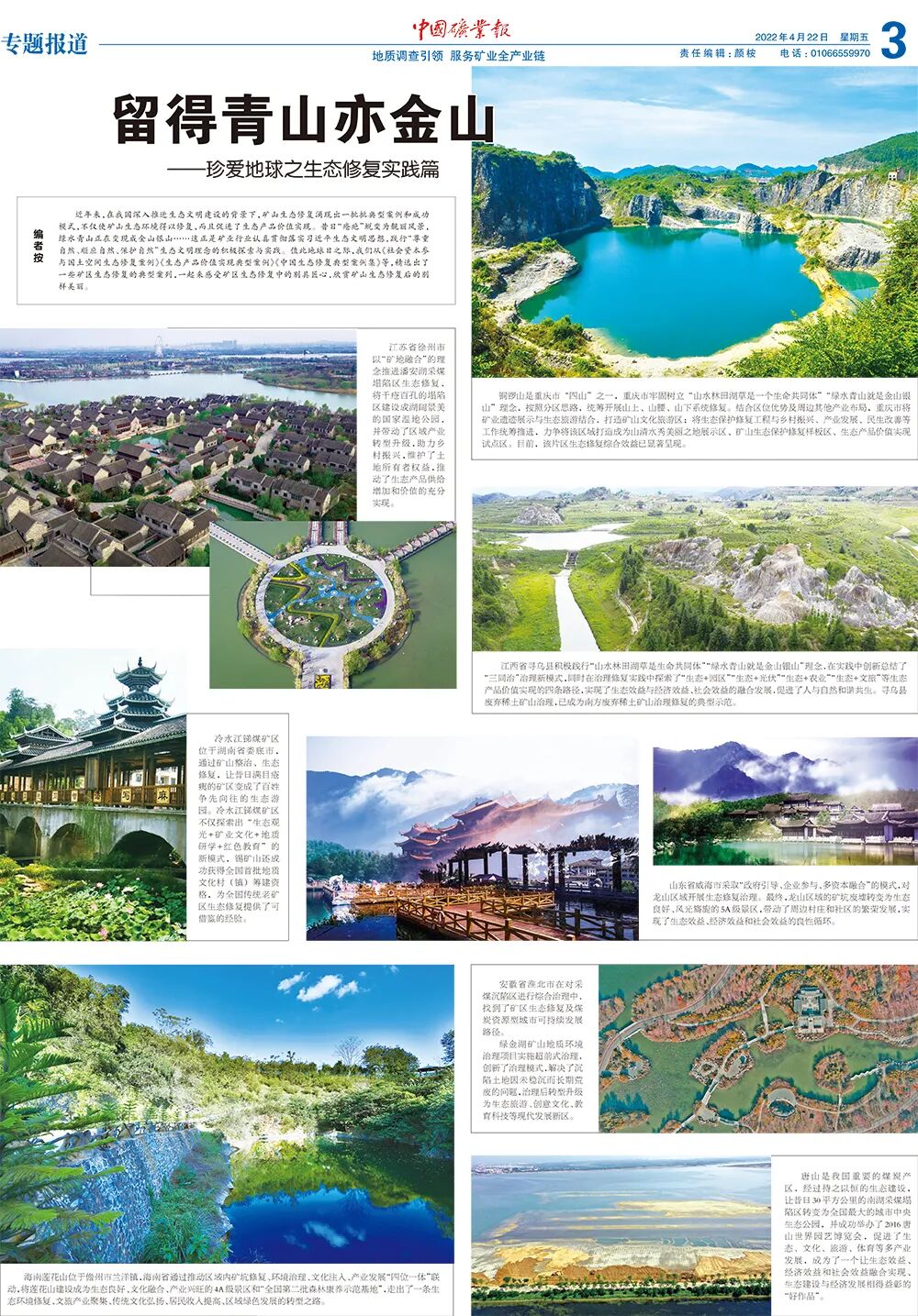 今天是2022年4月22日,第53个“世界地球日”。《中国矿业报》隆重推出“世界地球日”特刊,让小编带你一起去领略这12块版,内容精彩纷呈,值得收藏哦!