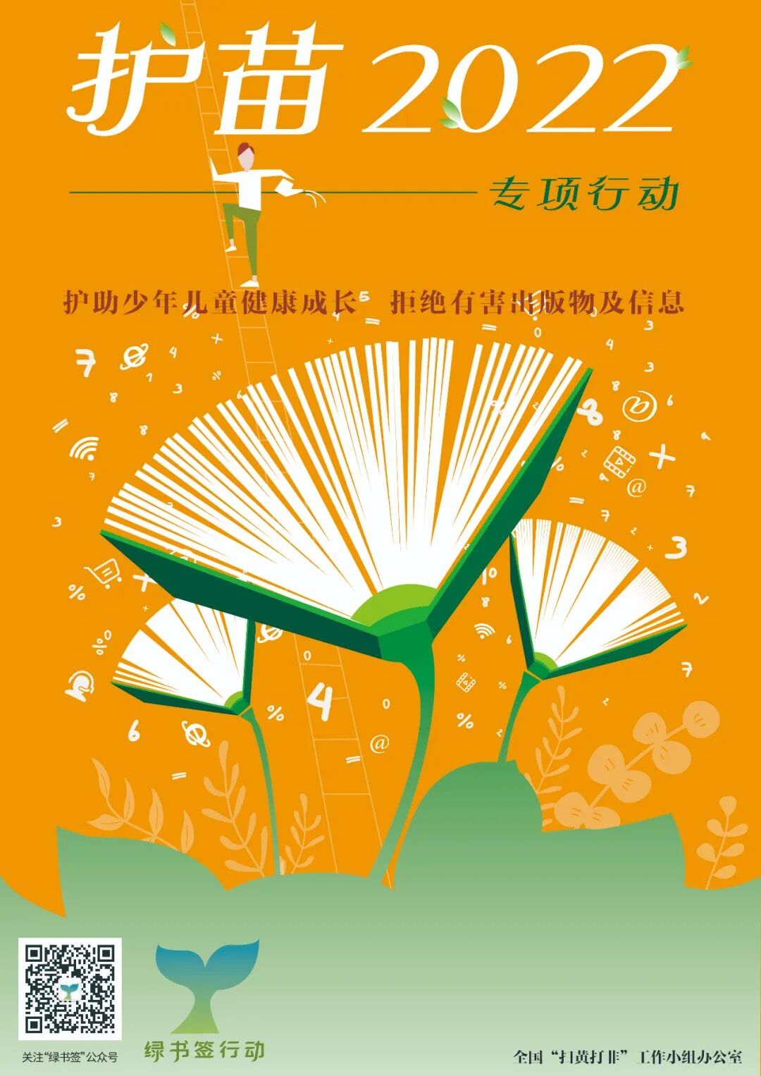 为营造全社会共同关心关爱未成年人健康成长的良好氛围,全国“扫黄打非”办公室决定在“护苗2022”专项行动中,组织开展2022年“绿书签行动”,主题是“护助少年儿童健康成长,拒绝有害出版物及信息”。各地将面向社会广泛开展形式丰富、生动活泼的系列“护苗”宣传教育。4月19日,全国“扫黄打非”办公室对外发布2022年“绿书签行动”宣传海报、书签设计图样。