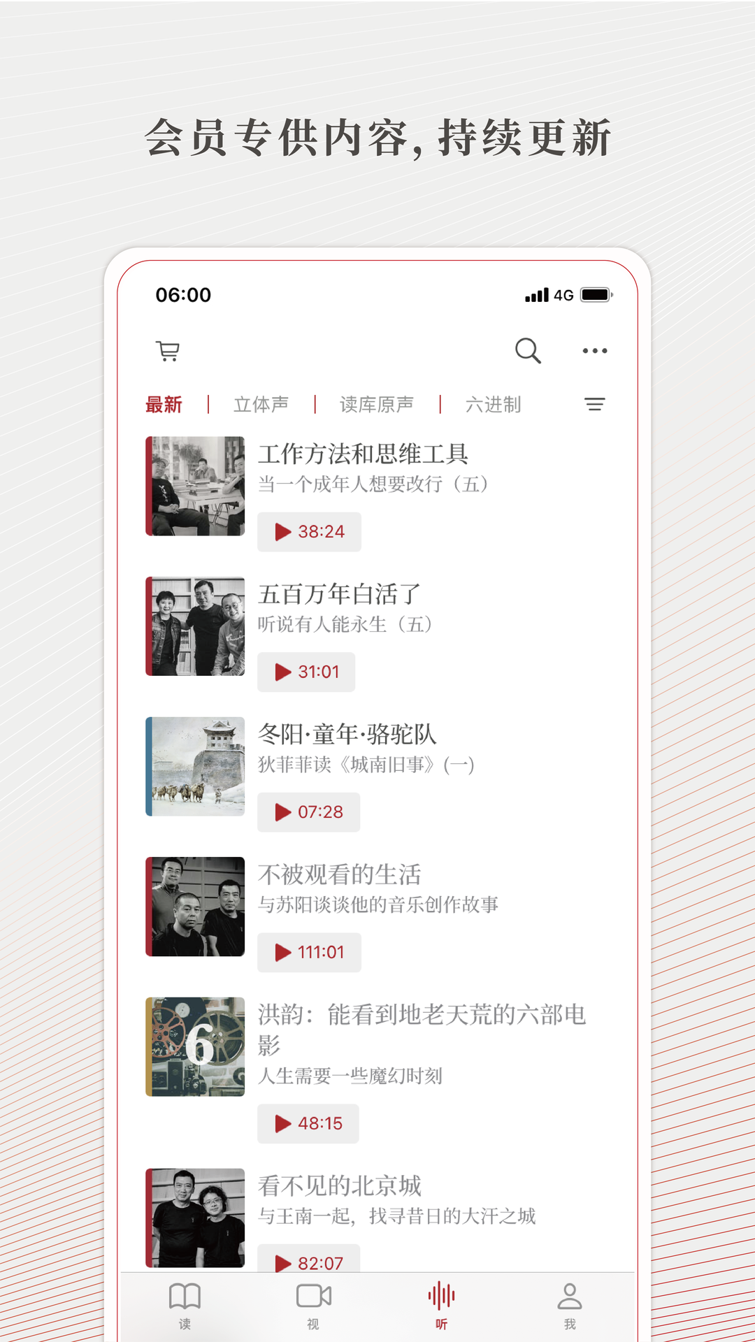 从“如何在认清婚姻的真相后经营好它?”“教育改革下家长该怎么做?”,到“房价还会上涨吗?”“孩子同伴间起了冲突父母要如何处理?”,为你提供看问题的高阶视角,助你做出明智的决策。生活充满琐碎,但不必活得琐碎。随三联去牛津、耶鲁、海德堡大学,看看何为好的教育;去大英博物馆、卢浮宫、大都会博物馆,掌握艺术的观看之道。「这本杂志在很大程度上参与了我精神气质的塑造。我喜欢它的简练和深刻,审慎和优雅。我喜欢它高于时代流俗的复杂性,喜欢它的匠人态度和隐藏在这种态度下的改变世界的野心。」在公众号后台,每天都会收到新老读者对三联「爱的表白」。拥有三联,无须再费心为全家人寻找精神食粮,新闻热点、历史、艺术、文学、哲学、书话、思想、理财、消费、旅游、美食、健康、收藏,包罗万象。每周一期,满足大人与孩子的多种需求。订阅「三联数字刊」后,可通过手机第一时间读到全年52期每周新刊,无需经历等待邮寄收货的心焦。不方便阅读时(如开车、健身、做家务),还可畅听有声版。更重要的是,你还能读到1995年至今——28年来超过1200期的周刊典藏内容,相当于拥有了一座知识、文化、新闻的富矿。三联作为时代的记录者,其间有太多精彩供你重温、追忆。家庭生活中有了三联“声”与“影”的双重参与,大人与孩子皆能从中学习新知、获得熏陶,实现全家人更有质量的成长。一本连续出版了17年的Mook(介于杂志与书籍之间的“杂志书”)。豆瓣均分8.1,兼具杂志的广博,与书籍的深度,是城市中产喜爱的家庭读物,也是你相逢恨晚的「手边书」。在纸书与出版业被唱衰的年代,《读库》以一种温和低调的方式突围。不曾吆喝,已引得梁文道、陈晓卿、史航等一批文化牛人自发安利;无意营销,却令不少读者从校园时代到成为职场中坚,一订就是十数年。