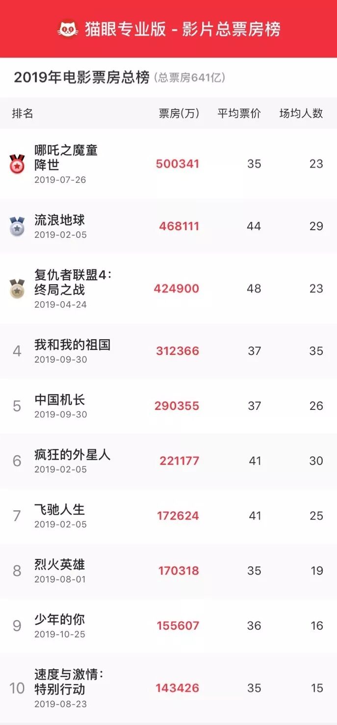 靳锦:今年国内票房排行的前十里面,好莱坞的力量已经非常薄弱了,虽然票房最高的是《复仇者联盟4》,但这是因为它的全球票房已经超过了《阿凡达》,实现了登顶,在中国进入票房第三名也非常合理。剩下的就是《速度与激情:特别行动》这部电影,但只是第十名。包括去年年底上映的《星球大战》,在美国是票房冠军,但在中国只拿到了一亿人民币的票房,可以说是惨败。我们是不是说,在2019年这一年,好莱坞的故事在中国确实失灵了呢?