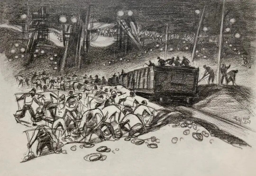 王琦,《十三陵水库工地》,速写,1958