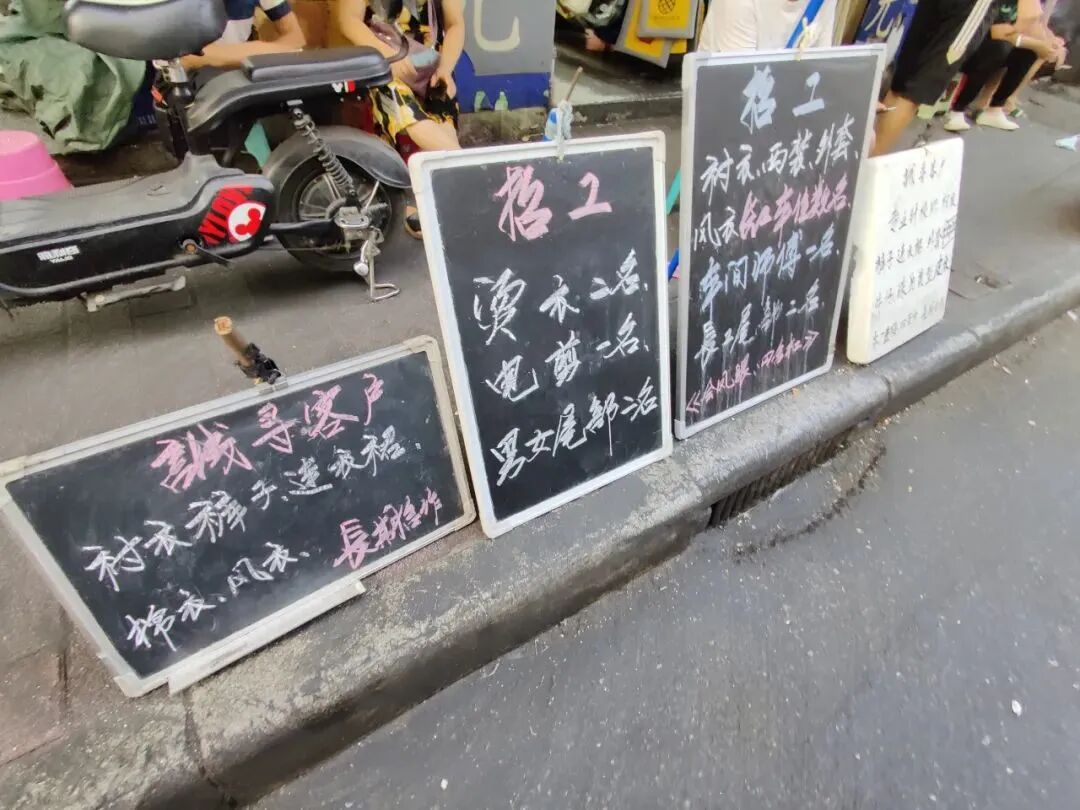 在人最多的上午 10 点,招工的老板和应聘的工人可以把整段马路填满。城管必须在路边用高音喇叭循环播放:“招工请靠边”的提示语,并时常用指挥旗驱赶人群,以便让汽车和三轮车通行。