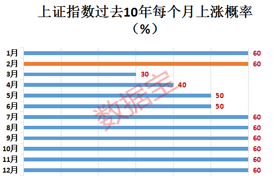 证券时报·数据宝统计,以近10年的大盘指数月度涨跌幅数据分析发现,7-12月份的单月上涨概率均达到60%,在全年月份中上涨概率较高。