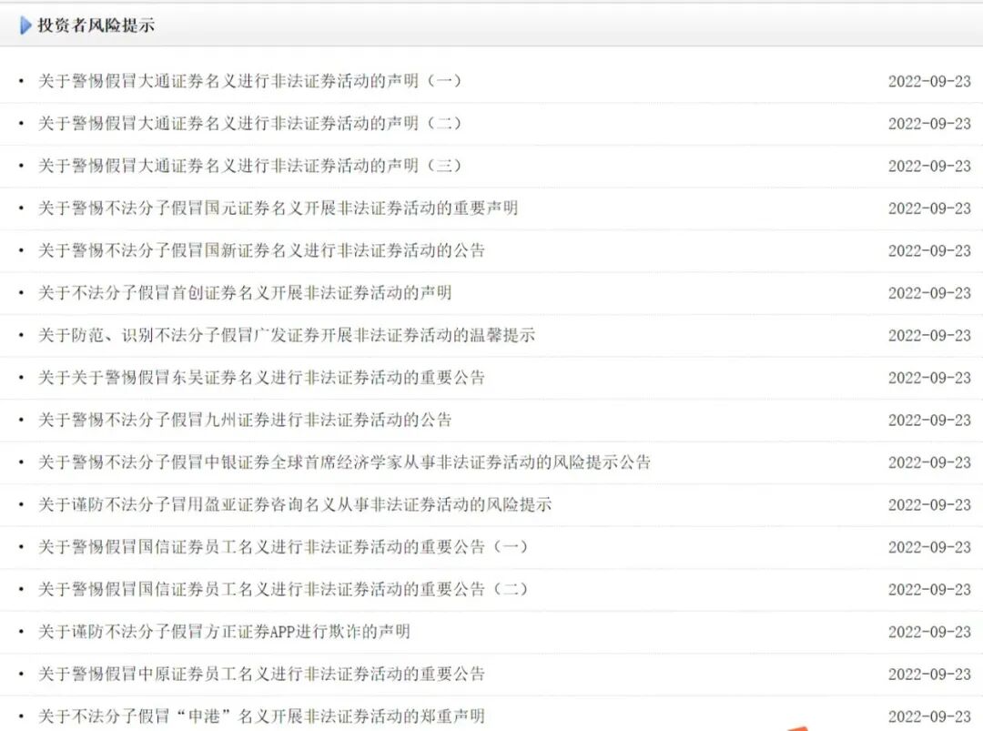 除了证监会外,券商也一直在不遗余力的警示非法证券的风险,提示投资者注意防范。